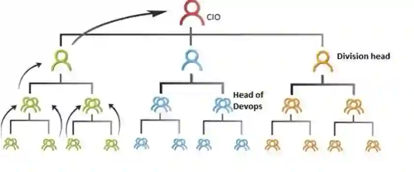职能结构可以说是今天众多组织中最常见的结构类型。这种结构的目的是将具备专业技能的员工按不同的功能分组,如 IT 交付、基础设施、运维、治理、DevOps 和测试等。每个部门 / 职能部门都由一个人领导,这些人再向一个交付单元的领导汇报,最后所有高层都向 CIO 汇报。