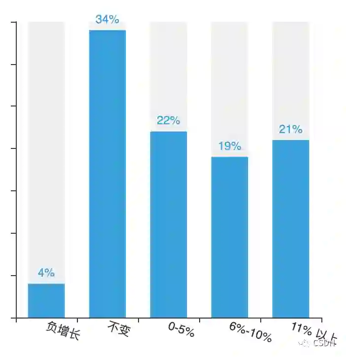 报告数据显示,过去一年中,超过六成开发者表示工资有所上涨,甚至涨幅在 11% 以上还占据了 21%。但尽管行业整体薪资水平在逐步提升,依旧有 34% 的开发者表示工资没有发生任何变化。