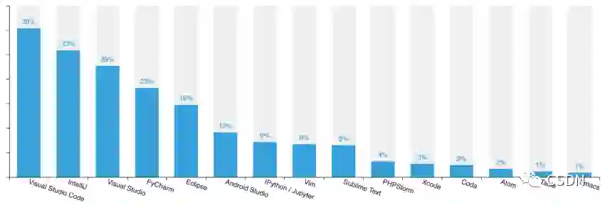 作为速度快、轻量级且功能强大的跨平台工具,Visual Studio Code 也深受开发者喜爱,约 39% 的开发者表示会在日常工作中使用它。