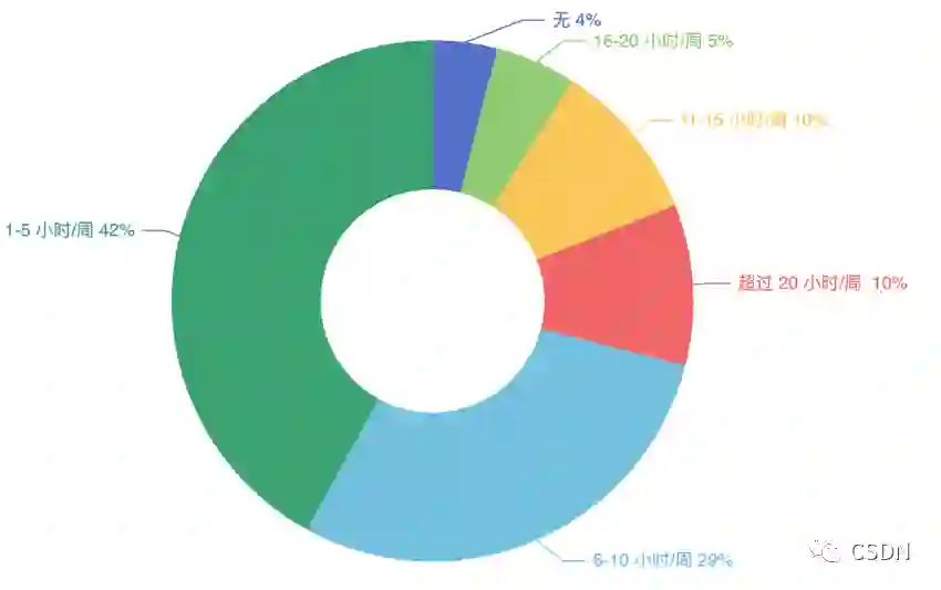 96% 的开发者每周都会保证一定的学习时间,其中学习 1-5 小时/周的占据 42%。另外仅有 4% 的受访者表示没有时间去充电学习。