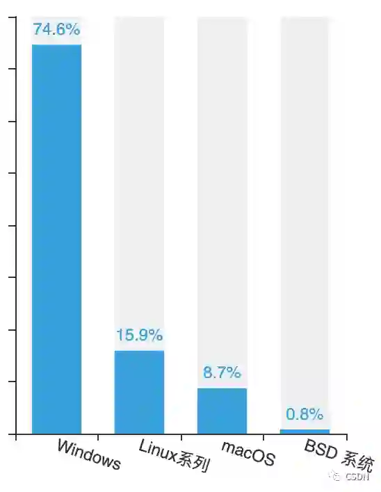 然而不论是框架、语言还是工具的选择,都需要在合适的操作系统中实现。尽管苹果推出的自研 M1 系列芯片使 Mac 的性能更加强悍,但在国内开发者圈中,Windows 操作系统依旧是的主流:超过 7 成开发者日常使用 Windows 操作系统,Linux 作为服务端开发的主要操作系统,其使用量也达到近 16%,而使用 macOS 的开发者则不足 10%。