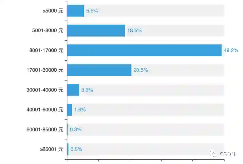 “高薪”,一直都是程序员群体的标签之一,近几年其薪资水平更是在逐渐拔高。去年,44.5% 的开发者月薪 8001-17000 元,如今这一数据已增至 49.2%,同时薪资在 17001-30000 元的程序员比例也由 16.2% 增至 20.5%。