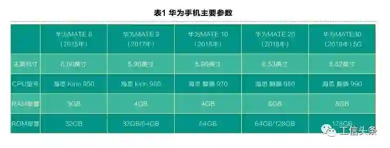 工业APP是基于云平台、智能终端、高速有线或无线网络的基础设施发展起来的:以华为手机为例,列出我们关心的功能性能(见表1)。