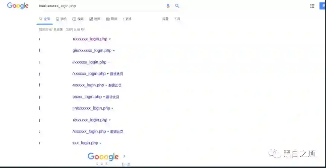 发现并没有什么有用的信息,于是开始尝试 google hack 。前面我们有发现一个 xxxxxx_login.php 的接口,通过语法: inurl:xxxxxx_login.php 搜集到大量相同的网站。