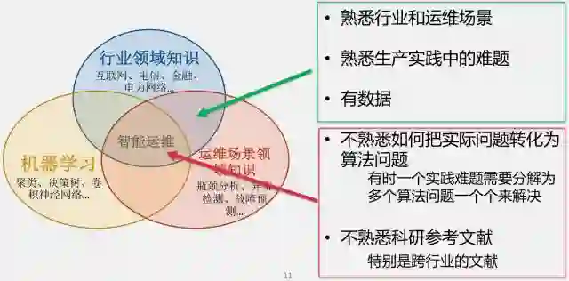 同时,工业界也不太熟悉查阅科研文献,特别是跨行业的文献。因此,智能运维是一个需要三方面领域知识结合的高门槛领域。