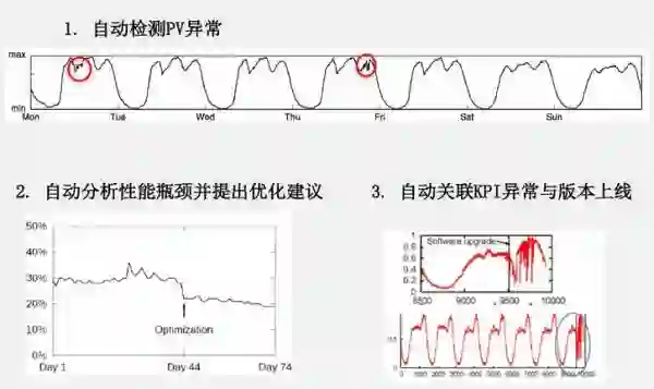 裴丹教授通过与百度运维、搜索部门的合作,分享了智能运维的三个案例,包括异常检测、瓶颈分析以及智能熔断。第一个案例是基于机器学习的 KPI 自动化异常检测。