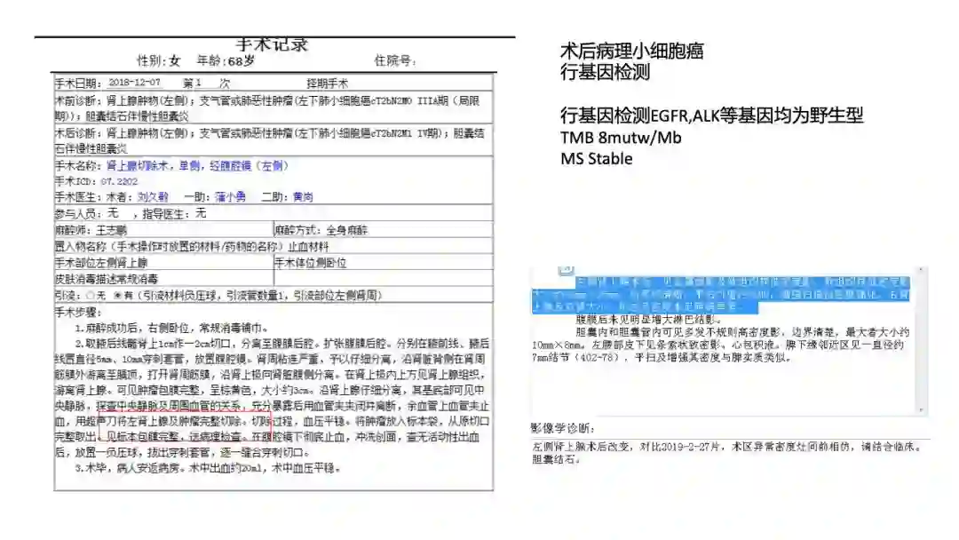 行基因检测EGFR、ALK等基因均为野生型,TMB 8mutw/Mb,MS Stable。