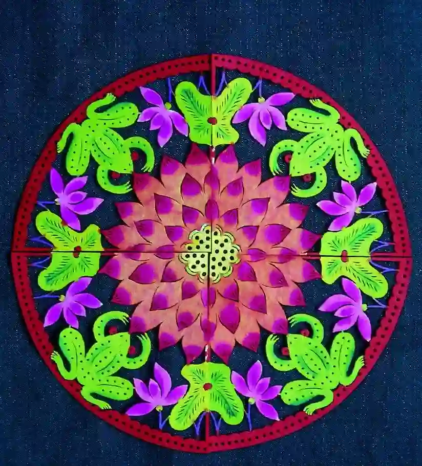 河北蔚县莲蛙团花刻纸窗花 | 杨阳供图