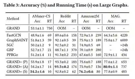然而,GRAND 在实际应用中面临着可扩展性方面的局限性,这是因为 GRAND 在每个训练步骤中要执行多次随机传播,而随机传播过程均需要使用幂迭代(power iteration)来计算矩阵乘积,该过程的复杂度与图大小呈线性关系,因此在面临大图时,GRAND 的模型训练会变得非常慢。