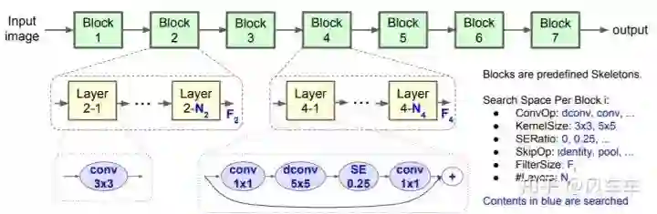 上面所介绍的NAS工作很少有人工设计网络的影子,基本都是重新设计了新的搜索空间。从实验结果上来NAS搜到的网络确实能取得很好的效果,但并不一定适合实际部署(比如DARTS能在很小的参数量下达到很高的精度,但是实际forward其实很慢)。既然之前已经有了很多优秀的人工设计的网络结构,NAS可以通过引入这些先验知识来加速或者取得更好的实际部署性能。