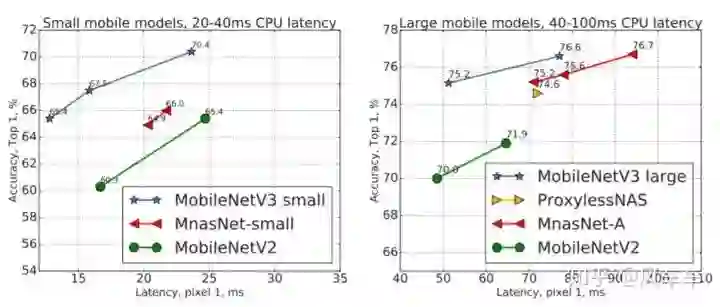Google后来结合了上面这两项工作,推出了Searching for MobileNetV3[ICCV'19,https//arxiv.org/abs/1905.02244],把MnasNet魔改的MobileNetV2再用NetAdapt做微调,然后加了一些工程技巧,得到了最后的MobileNetV3。