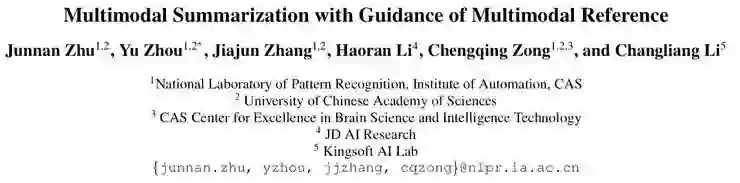Junnan Zhu, Yu Zhou, Jiajun Zhang, Haoran Li, Chengqing Zong, Changliang Li. Multimodal Summarization with Guidance of Multimodal Reference. AAAI-2020.