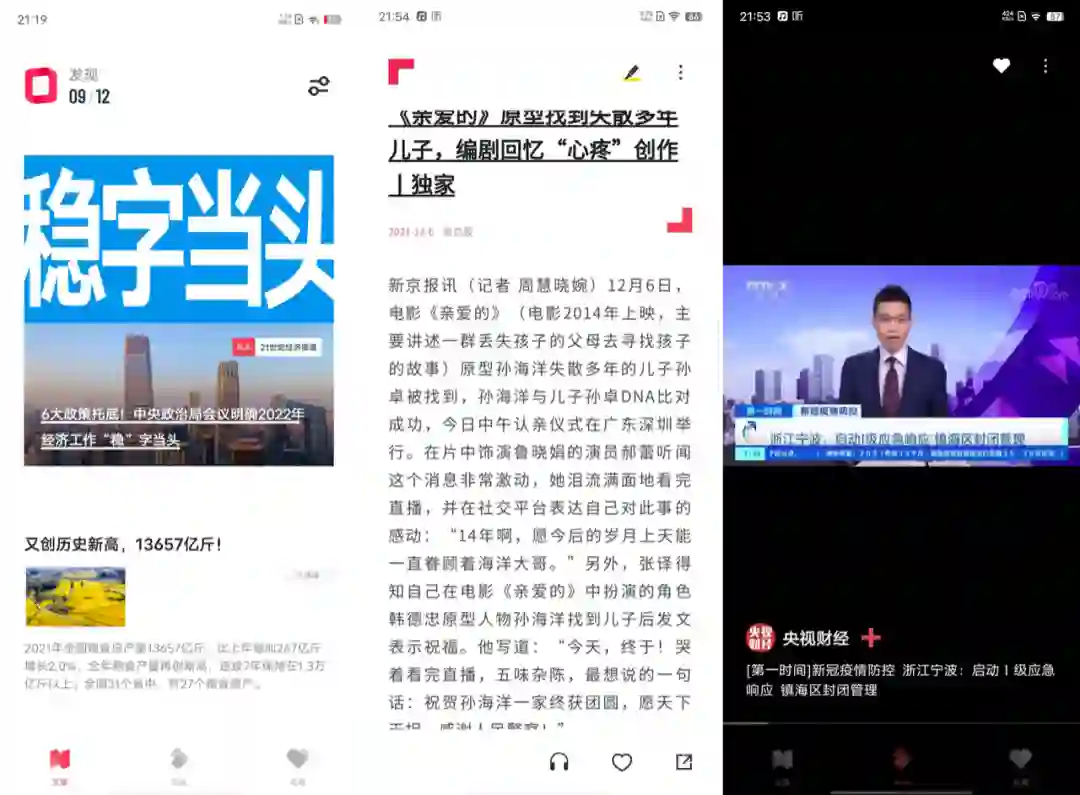 「原子阅读」是 OriginOS Ocean 中新加入的原生应用,也是一款订阅类信息流应用。从设计角度上来说,原子阅读很好地贯彻了 OriginOS Ocean 的设计风格,并且根据应用属性加入了更多、更大胆的图文排版设计,聚合了社会、财经、科技、娱乐、生活等多个领域信息的同时,页面布局也会根据浏览内容的不同发生变化。