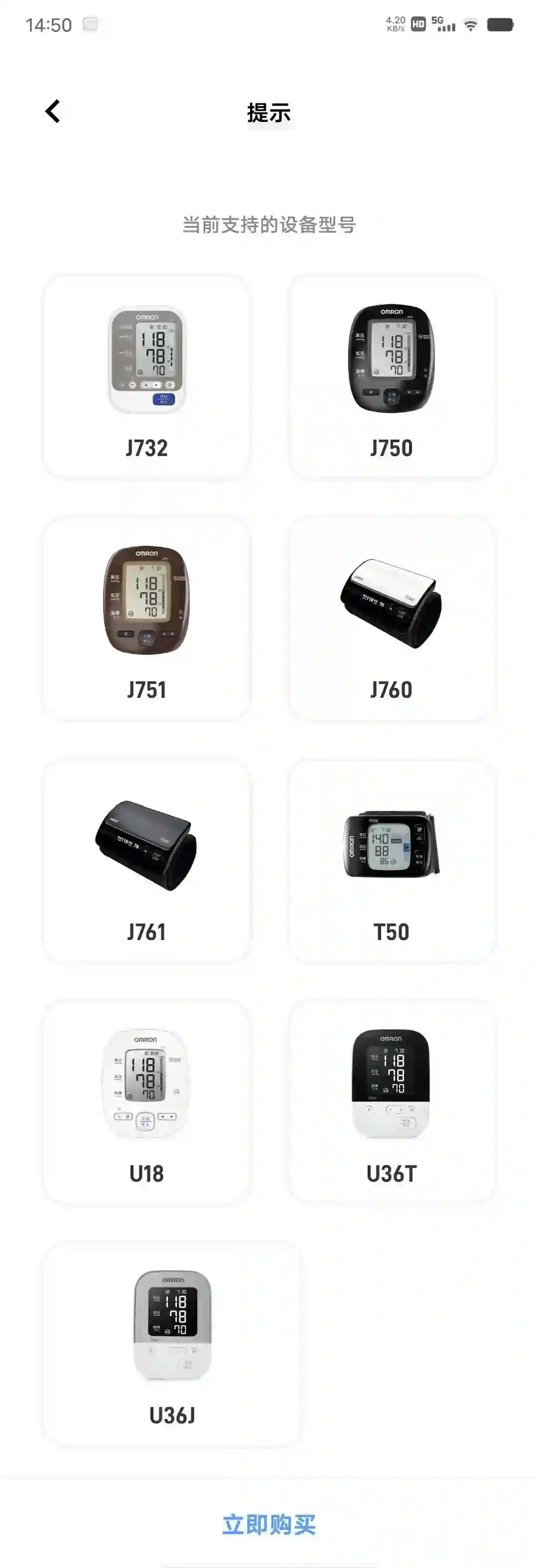支持的欧姆龙血压计设备
