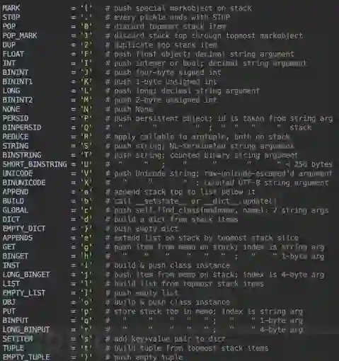 如下图,pickle默认支持很多命令语句。