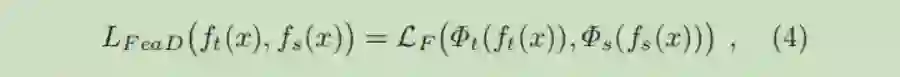 把中间层的输出作为一种知识,进行知识蒸馏,蒸馏损失函数定义为: