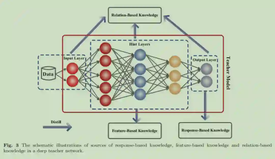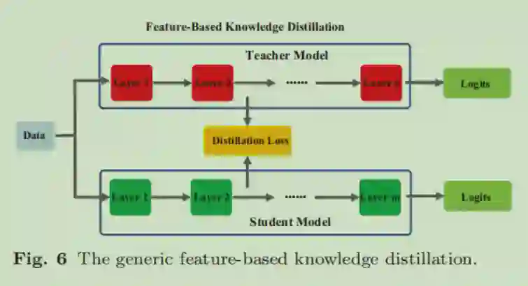 Feature-Based Konwledge 指的是教师神经网络中间层的输出,比如卷积神经网络中卷积层输出的 Feature Map,循环神经网络中的 hidden state,Transformer 中的注意力矩阵等。Relation-Based Knowledge 可以理解为是教师神经网络所有中间输出结果之间的一种关系捕获,所有知识之间的关系。