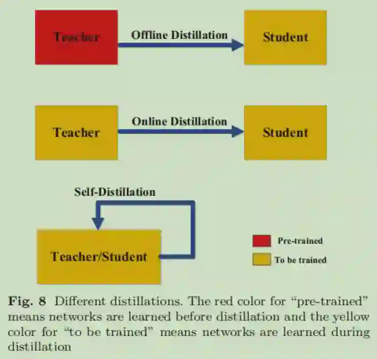 本节介绍知识蒸馏中教师、学生网络的训练方式,根据教师神经网络是否随着学生神经网络的更新而更新,可以分为: