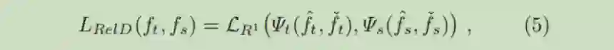 利用知识之间的关系进行知识蒸馏,知识可以是网络的输出,也可以是中间层的输出,重点在于它们之间的关系,利用这个关系进行知识蒸馏,蒸馏损失函数为:
