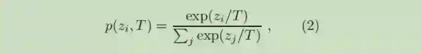 利用一个温度参数(知识蒸馏的命名来源于此操作)进行平滑处理,计算公式为