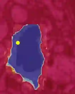 在 2D 图像中分割物体的泛洪算法网络。黄点是当前焦点区域的中心;该算法在迭代检查更多图像区域的同时扩展分割区域(蓝色)。
