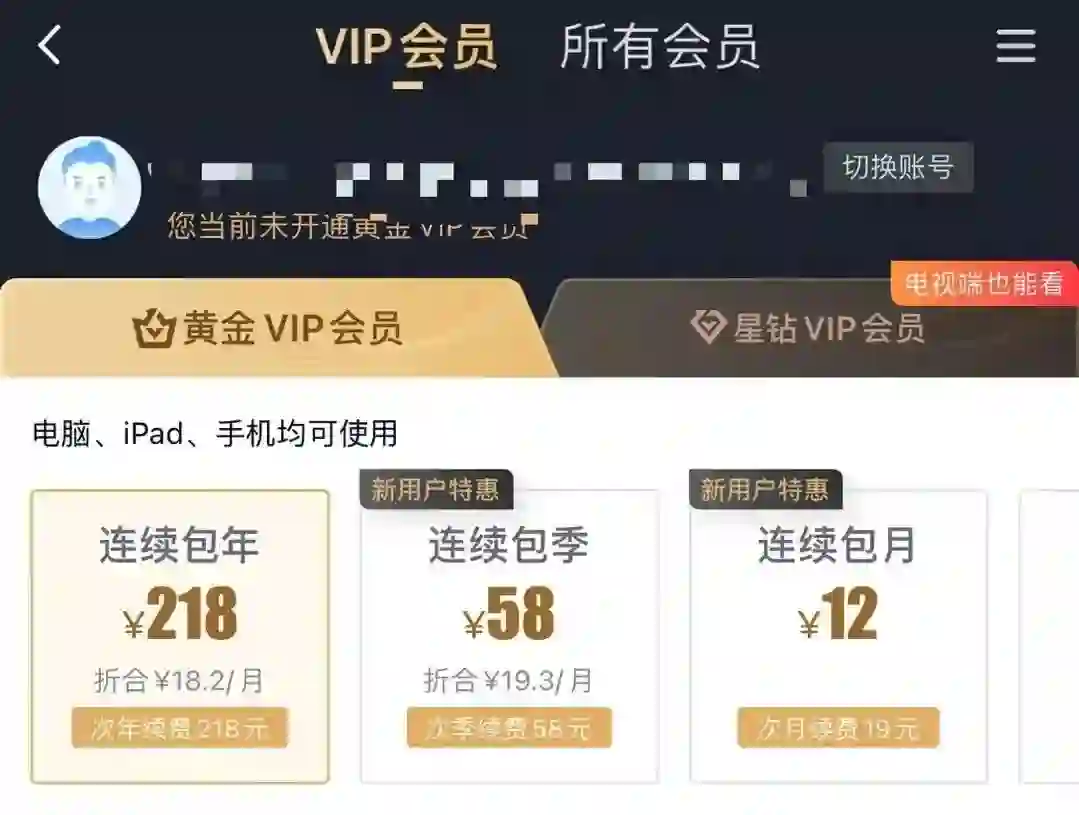 而且三个视频网站一种VIP,VIP也有花样。