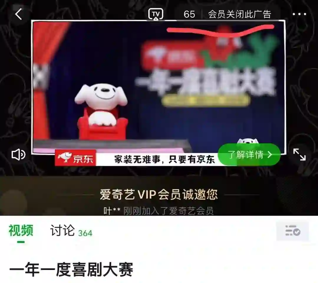 就在这个小品的疯狂吐槽下,爱奇艺也还是加上了65S的广告。