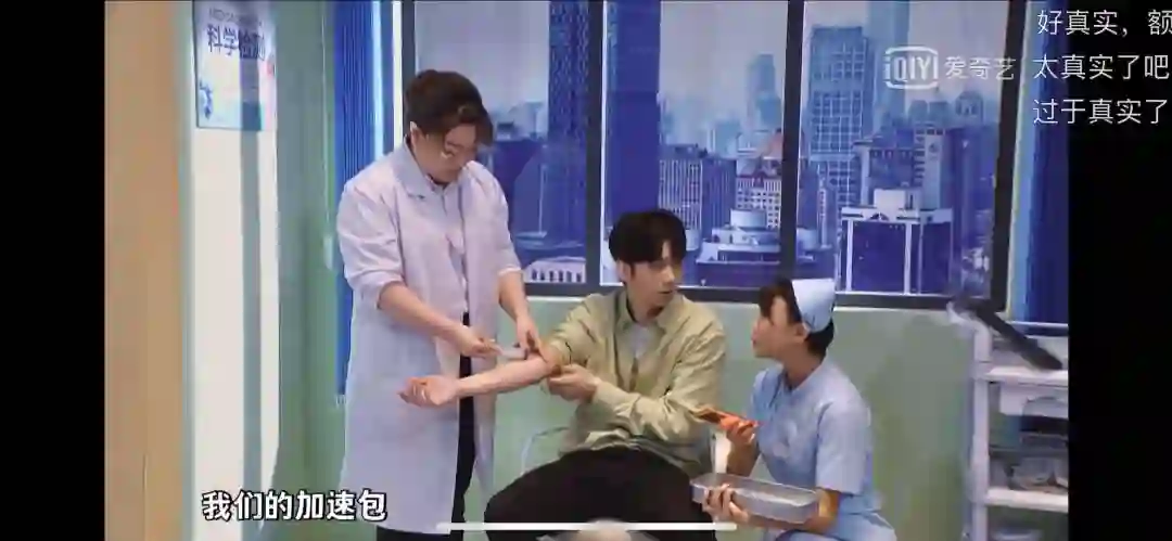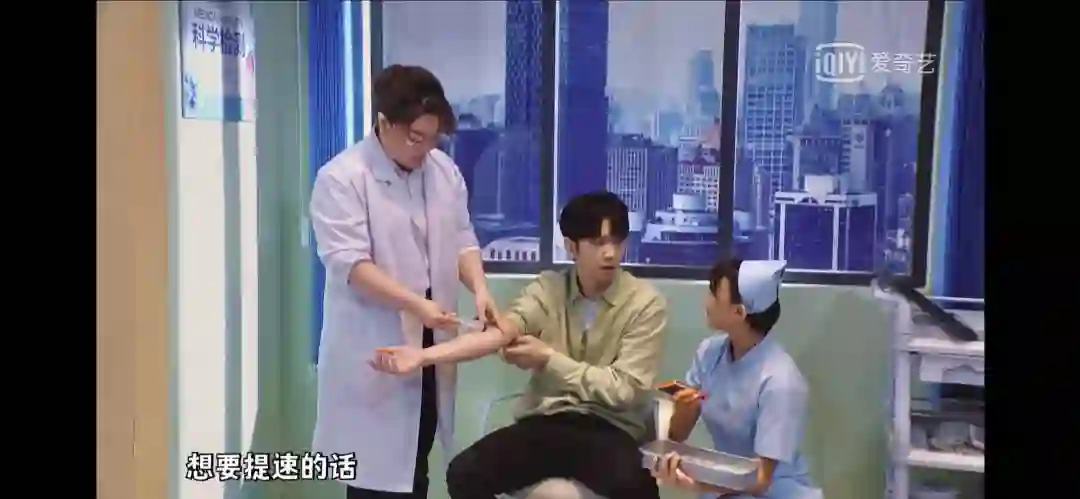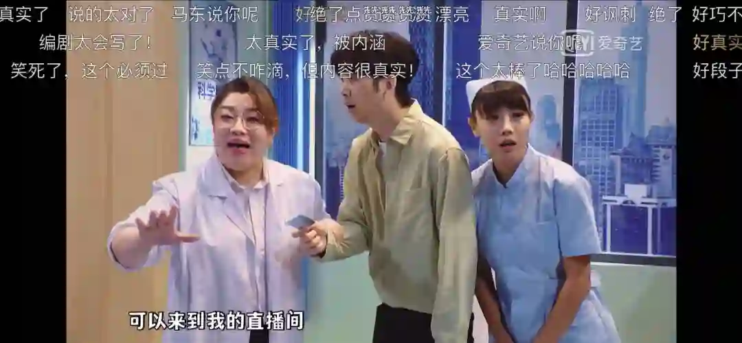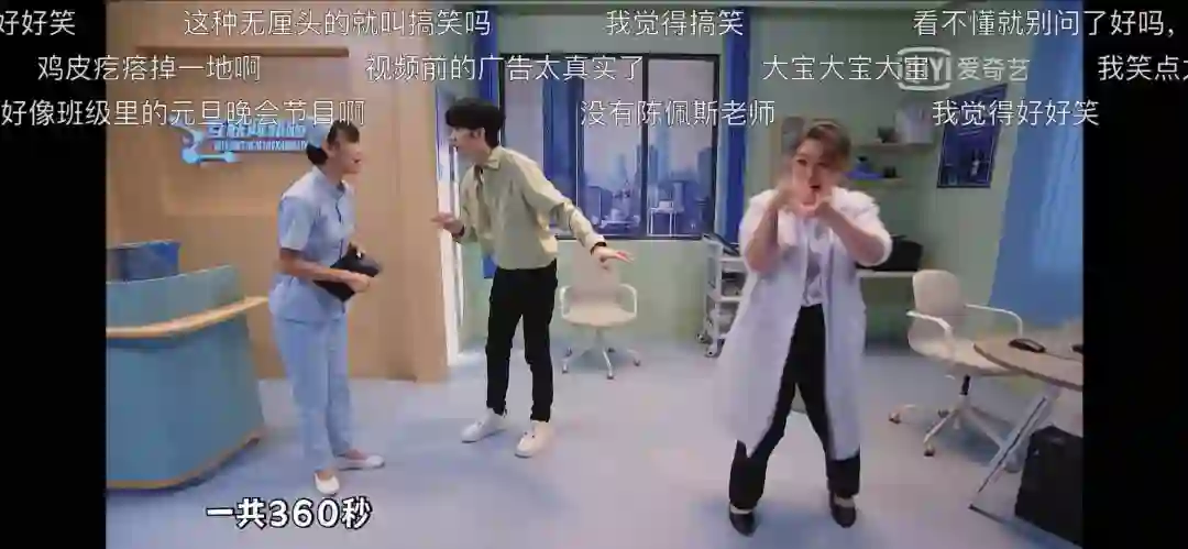 小伙子见到了医生,还没说上话。医生和护士便开始念叨一系列我们“耳熟能详”的广告。