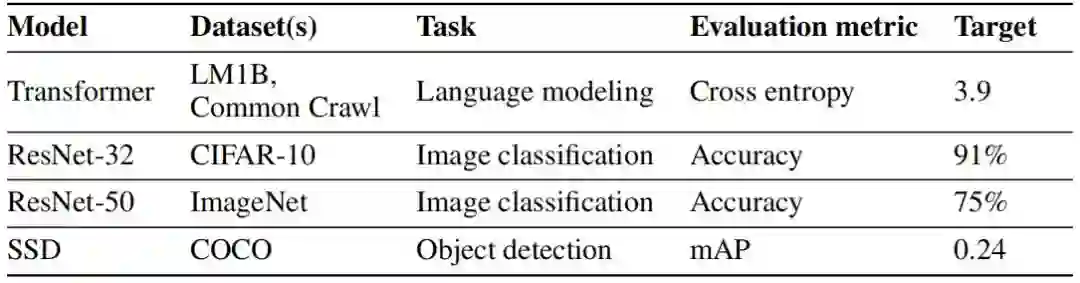 作者在两个语言建模任务、两个图像分类任务和一个目标检测任务上验证了数据回送的效果。对于语言建模任务,作者在 LM1B 和 Common Crawl 数据集上训练了 Transformer 模型。对于图像分类任务,作者在 CIFAR-10 数据集上训练了 ResNet-32 模型,在 ImageNet 数据集上训练了 ResNet-50 模型。对于目标检测任务,作者在 COCO 数据集上训练了 SSD 模型。