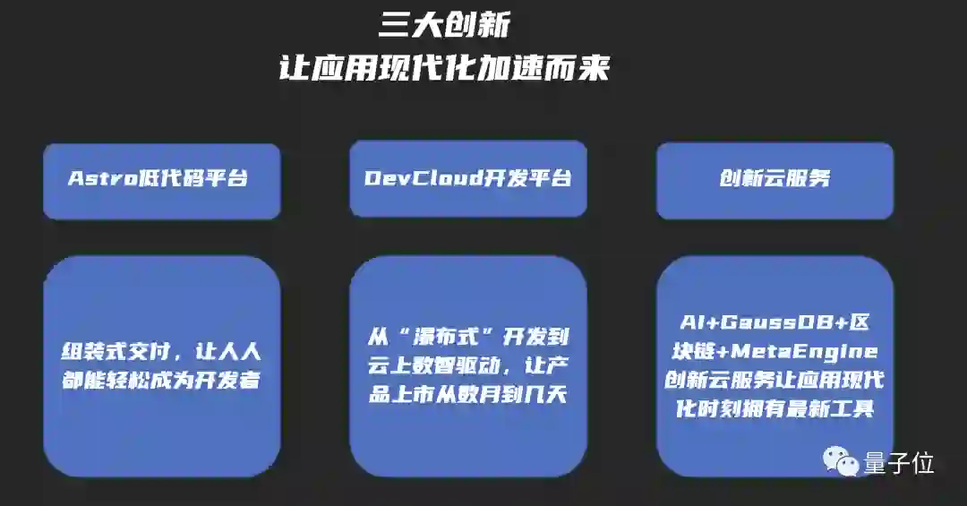为此,华为云还发布了Astro低代码平台和DevCloud开发云。