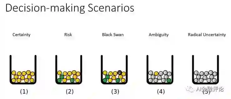 第五层是 Radical Uncertainty,“ 人们不能描述出 Radica Uncertainty ,也完全无法解决这个级别问题。就好像人无法写一个模型来预测恐怖袭击会在何时、何地、如何发生一样”。