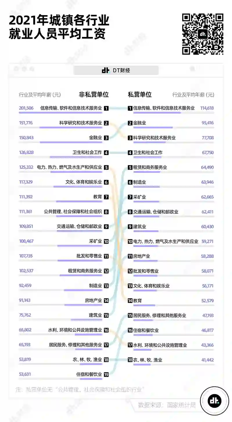 不过,相较于城镇非私营和私营单位的年平均工资,你所处行业的平均水平可能更具有参考性。