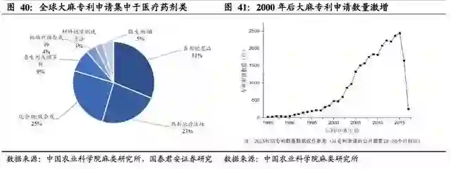 与发达国家相比,我国大麻研究的专利申请虽然数量排名第一,但主要集中于大麻纤维分离及应用和大麻籽的食用方面,药用研究专利匮乏。