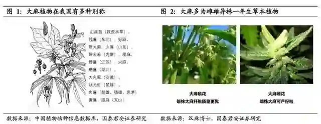 大麻为桑科大麻属一年生草本植物,雄株纤维质量更优,雌株可产籽粒。
