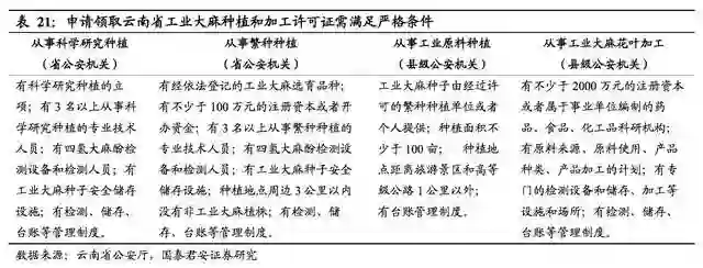 目前我国工业大麻种植和加工需要当地公安局审批,总体上我国工业大麻种植许可较为严格。