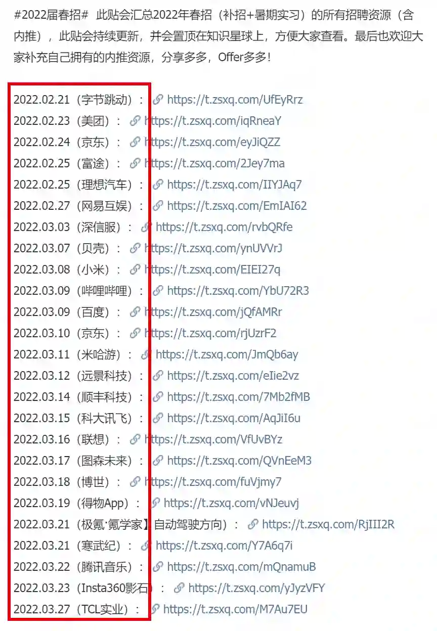 每年春招(补招)和春季/暑期实习的求职高峰阶段在3月~5月,大家要把握好投递时间,因为不少公司其实在3月底/4月中旬就截止简历投递了。另外要提醒各位,2023届校招提前批/秋招也快开始了,该抓紧准备了!
