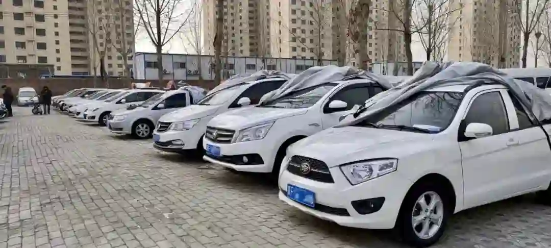 上午8点半,腾运二手车市场西院刚刚揭开车衣的二手车