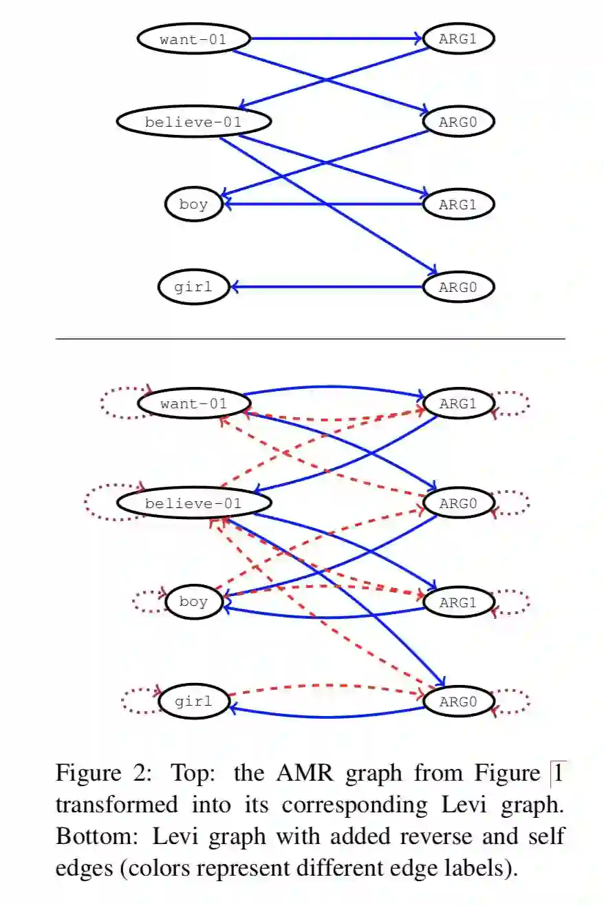 本文提出了一种图的转换方法,通过将图转换为 Levi 图从而解决了上述问题。同时该框架将 Gated Graph Neural Network 加入到 encoder 部分,其余部分采用 seq2seq 的原始结构,在两个任务上取得了超越了 seq2seq 的结果。