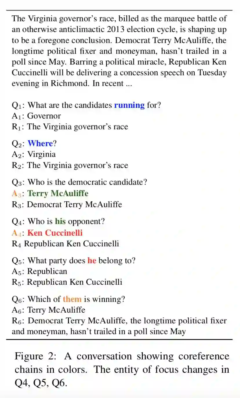 生活中,人们通常根据一系列相互关联的问答情况来收集信息。因此使用基于对话的机器阅读理解可以更有利于信息的收集。针对该场景,本文发布了一个基于对话的机器阅读理解数据集 CoQA。与以往的机器阅读理解数据集如 SQUAD 不同,该数据集存在以下特点: