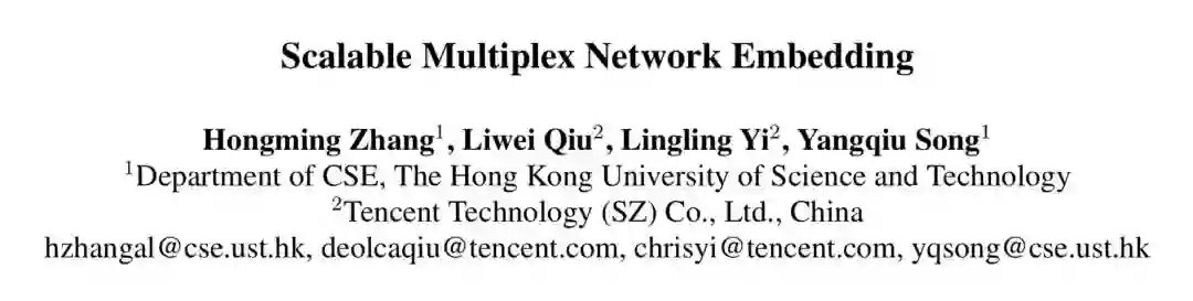 本文是香港科技大学和腾讯发表于 IJCAI 2018的工作,论文提出了一种可扩展的多路复用网络嵌入模型(scalable multiplex network embedding model),将多字形关系的信息表示为一个统一的嵌入空间。