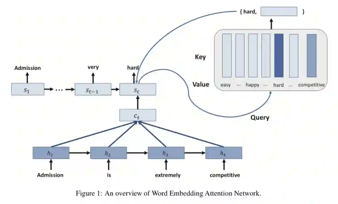 本文采用将候选词作为 value, 而对应的 word embedding 则是 key,通过将 RNN 的输出作为 query,根据 query 和 embedding 的 similarity 来进行生成词的选取。