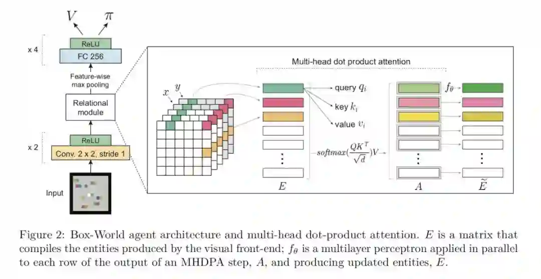 2. Attention 模块的加入:Attention 模块让关系强化学习中关系的表达得以更优秀。原本的 RNN 等算法对于序列的长短比较敏感,但是在 attention 机制下,两个向量之间关系的计算不再受向量之间距离的影响。同一个场景下欧式距离较远的对象也可以很好的提取出存在的关系;