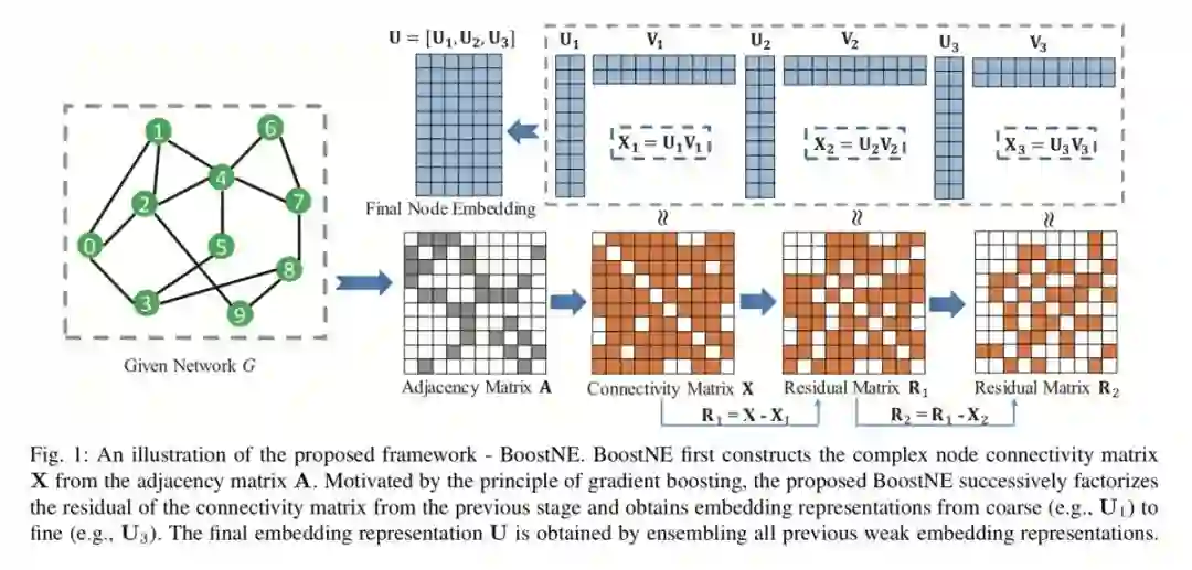 本文来自亚利桑那州立大学,论文提出了一种新颖的多级网络嵌入框架 BoostNE,它可以学习从粗到细的不同粒度的多个网络嵌入表示,而不会强加普遍的全局低秩假设。方法新颖值得深入研究。