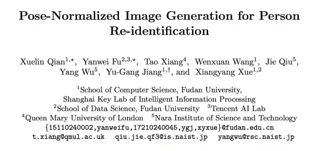 本文是复旦大学发表于 ECCV 2018 的工作,论文主要研究的是行人重识别任务中的人体姿态变化问题。作者利用 GAN 生成新的姿态行人图片,然后融合原图和生成图的 ReID 特征作为最终特征。在测试阶段,论文定义了八种代表性的姿态,然后生成八张人造图,加上原图总共可以得到九个特征,最后使用 max pooling 得到最终的 ReID 特征。