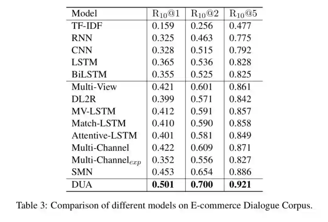 具体来说,论文模型将过往对话整合到 context 中,根据话语和回复挖掘关键信息,然后将每一个过往话语与回复进行语义匹配得到匹配分数。其中将最重要的回复前最后一句话语(可视为 query),与其他过往话语的向量表示进行了融合,并通过编码使每句话语中的关键信息得到凸显、过滤冗余信息。