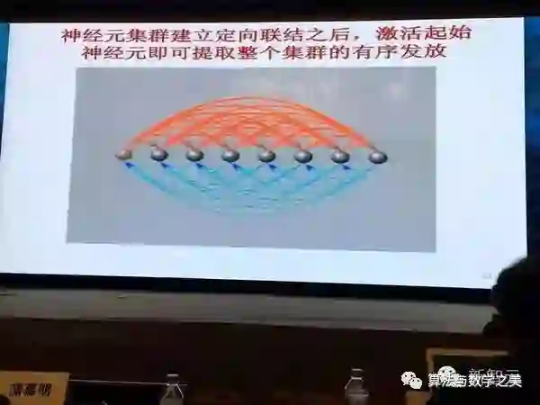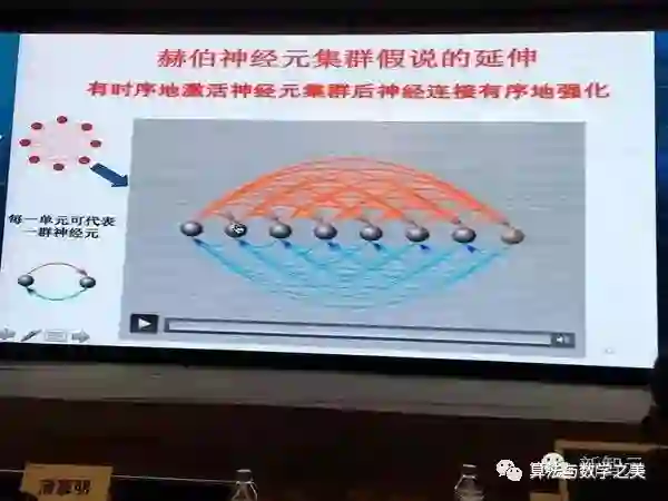 最后就是赫伯神经元集群概念,嵌套的集群,可以用来做图像记忆、概念形成,这都是嵌套式集群,加入STDP之后可以变成时序,包括语言信息的储存也是嵌套的。集群怎么形成,就这个句子出现的时候产生的集群,这个集群跟另外一句话的集群不一样,同样的一个字、一个语句,在不同的句子里面意义不一样,就是因为不同的集群里面产生了连接。所以,这个集群可以把多成分、多模态的信息放在一起,视觉的、听觉的、嗅觉的,都可以连在一起,不同模态的信息在网络的不同区域处理。在神经网络里面、自然网络里面,怎样捆绑不同模态的信息呢?就是用同步活动,同步的活动震荡。这个同步的震荡在不同区域同时震荡,或者震荡有一个相差,一个先一个后,这也是同步来捆绑各种集群,输入信息。在神经系统很重要的是图谱,有些图谱结构已经用在人工网络里面已经开始使用了。
