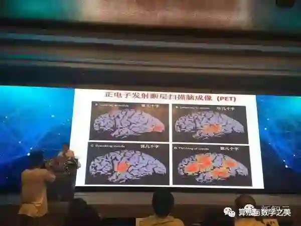 但最近我们可以从活体正常人的大脑,用各种脑成像方法来看,比如正电子成像——葡萄糖注射到大脑里面,活动高的地方就有信号,被测者看几个字,就发现脑的后部有活动,这是我们所谓的视觉区域,听几个字就听觉区有活动,我们让他讲几个字,语言区有活动。