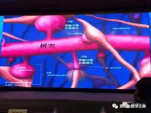 突触其实是产生在轴突终端的一个小泡,跟树突产生的一个突起,这个叫树突棘。这个突起在一般的神经细胞上面有成千上万个,至少几百个,这些突触就是表示说不同神经元来到轴突的输入,但不是都是有电活动,电活动加起来超过阈值,神经元整合就放电,就给下一个细胞发出信号。