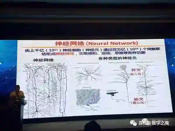 人的大脑有上千亿的神经细胞,我们叫神经元,通过连接,数目到了百万亿的连接组成一个复杂的神经网络,进行各种感知运动思维各种功能。神经元是有结构的细胞,有输入端也有输出端,输入端像树枝一样,输出端是一个轴突,输入段是一个树突。