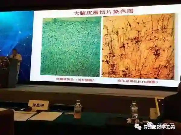 我们把神经系统切片,看皮层什么结构,里面是密密麻麻的神经细胞,左边是用染色神经细胞的细胞核,几乎是紧密的排列的,假如只染色少数神经细胞,只有少数细胞看到形状,你就看到事实上是有很多网状结构,这个网状结构就是所谓的神经网络,神经系统里面进行功能都是靠这个。
